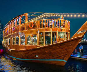 Sail along Dubai Creek or Marina on a traditional wooden dhow, enjoying stunning views and a delicious dinner.
